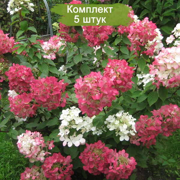 Этот комплект из 5 саженцев по цене 4 – отличная возможность украсить ваш сад яркими и насыщенными цветами гортензии Даймонд Руж.