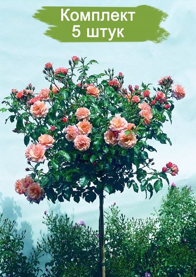 Этот комплект из 5 саженцев штамбовой розы Априкола станет прекрасным дополнением вашего сада, радуя вас своим великолепным цветением и ароматом.