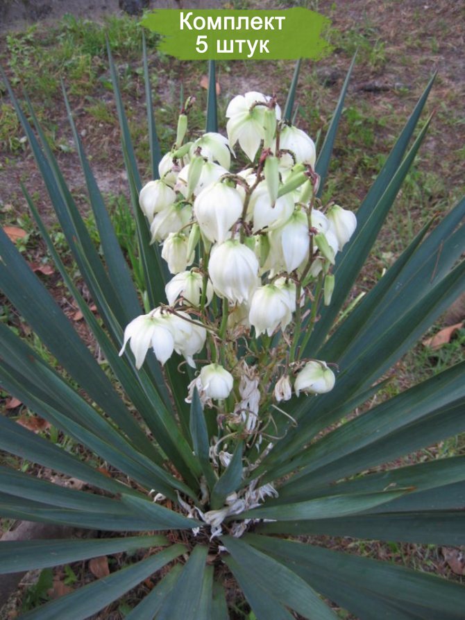 Этот комплект из 5 саженцев юкки Повислая по цене 4 – отличная возможность украсить ваш сад красивыми и неприхотливыми растениями!