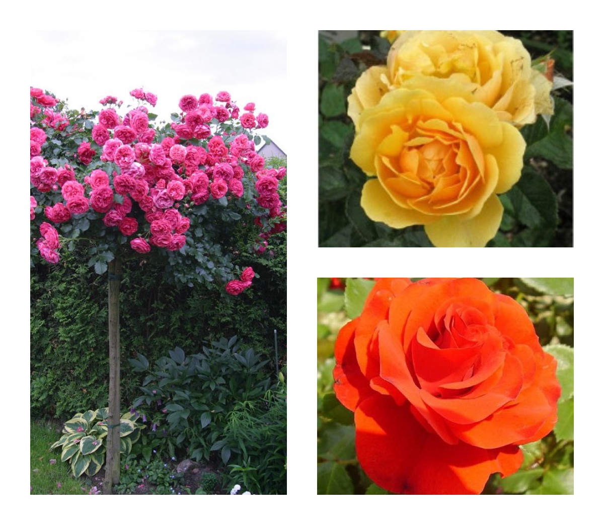 Саженцы штамбовых роз (3 шт. ): Ремембрэнс, Розариум Ютерзен, Эмбер Куин