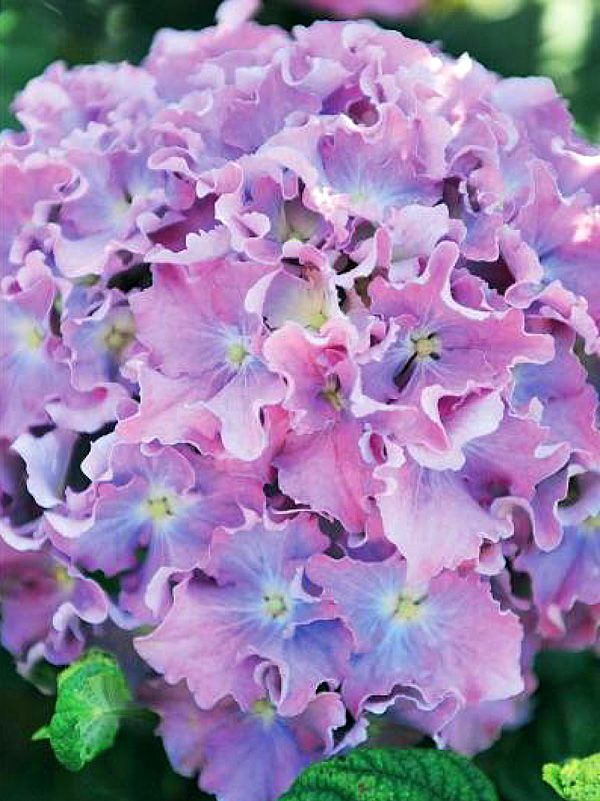 Гортензия крупнолистная Spike – это уникальный ремонтантный сорт, который радует цветением как на побегах прошлого, так и текущего года. Ее цветы могут быть голубыми или розовыми, образуя крупные шаровидные соцветия. Особенностью этого сорта являются многочисленные цветки с сильно волнистыми краями, которые придают соцветиям ажурный вид. В начале цветения центр цветка имеет бледно-зеленый оттенок, который постепенно исчезает, уступая место основному цвету – голубому или розовому.